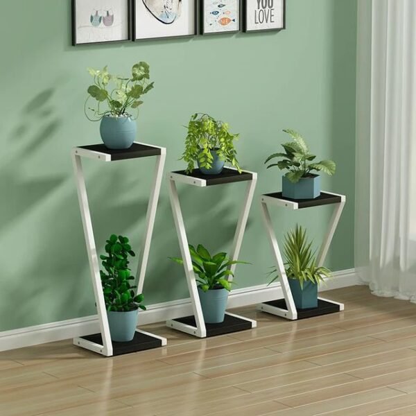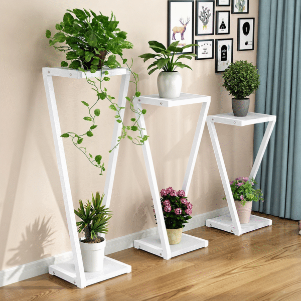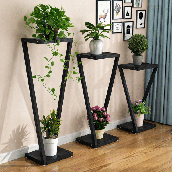 حوّل زاوية منزلك إلى مساحة أنيقة مع حامل النباتات المعدني بتصميم حرف زد عصري. ثابت، قوي، ويوفر عرضًا راقيًا لنباتاتك في أي غرفة